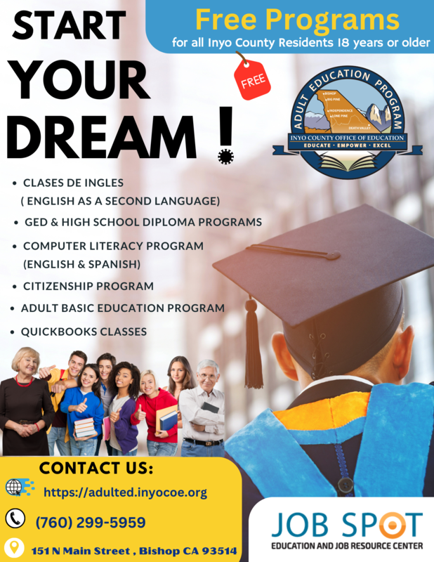 Adult Ed Opportunities at the Job Spot for Inyo County Residents 18 Years and Older